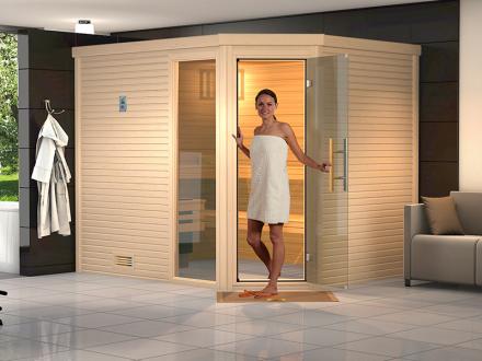 Tömörfa prémium finn szauna divatos üvegfelületekkel