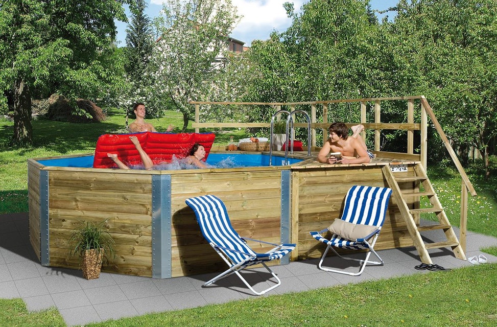 Gyakori kérdések medencénk telepítésével kapcsolatban itt. Gerendavázas kerti medencéinket azoknak ajánljuk akik nem szeretnének 1-2 évente új műanyag pancsolót vásárolni. A masszív Weka telített gerendaváznak köszönhetően medencéink faanyagára 5-év garanciát biztosítunk. Helyszíni összeszerelés, beüzemelés díjtételei és megannyi kiegészítő berendezés összefoglaló táblázata a „Műszaki rajzok” alatti fül alatt található. Fontos, hogy megfelelő teherhordó képességű felületet képezzen a medence alá. Javasoljuk 10 cm döngölt sóderágy + 10-15 cm vasalt simított betonlemez kialakítását, melyet a helyszín függvényében szintén megépítünk önnek ha kéri. Rendeljen a faanyagához professzionális póruszáró faápoló olajat is tetszőleges színben: Festékek, kiegészítők Kültéri terasz, terített fa burkolatok: Fa terasz építés Opcionálisan rendelhető kiegészítők megtekinthetők itt: medence kiegészítők Kitűnő választás azoknak, akik nem szeretnének nagyságrenddel több pénzt költeni kerti medencére, de a felfújható medence típusokat már megunták-kisgyerekes családoknak (kutya, macska gyerek nem tud belesni a medencébe)-természetes, kertbe illő természetes tömörfa gerendaváz-2 munkanap alatt készre szerelhető, beüzemelt medencét adunk Önnek. Nem kell durván összetúrnia a kertjét az építés miatt. Talajfelszín felett épített medence előnyei:
