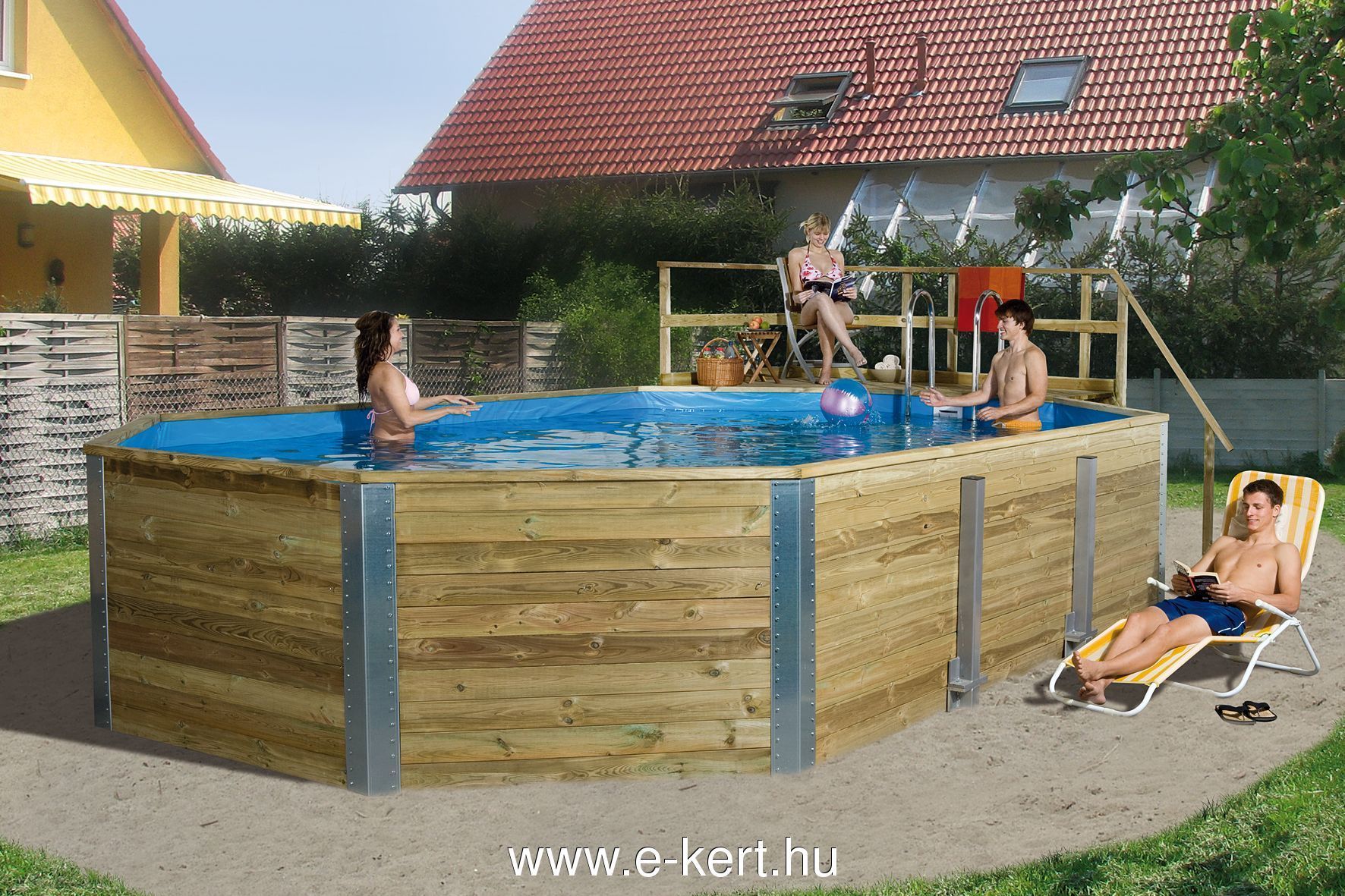 Gyakori kérdések telepítésével kapcsolatban: Medence építéssel kapcsolatos válaszok itt Opcionálisan napozó teraszokkal, takaró ponyvával, nemesacél medence létrával vagy akár hőszivattyúval is bővítheti kerti medencéjét. Opcionális megrendelhető medence kiegészítők Medencéink ideális és biztonságos megoldást nyújtanak kisgyermekes családoknak, valamint olyan helyszíneken ahol magas a talajvíz szint. Megfelelő teherhordó képességű teherhordó felületet kell képezni, amely legyen vízszintes és sima ! Praktikusan 10 cm döngölt sóderágy + 10-15 cm simított vasalt betonlemezt javaslunk. Természetesen térkövezett felület is megfelelő lehet de az jóval drágább mint a betonozott alap. Talajfelszín felett épített kerti medence előnyei: