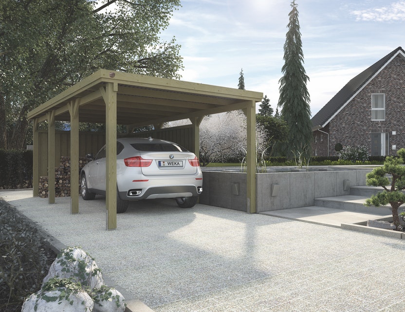 WEKA 617-es 3-féle méretben is rendelhető nyitott garázs tető / Carport kívánt méretét a fenti fotó melletti választógomb segítségével tudja kiválasztani.