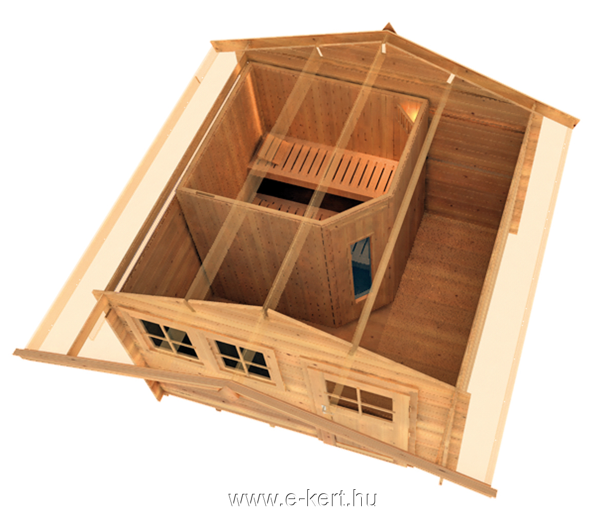 Szaunaház = 1db gerendaház 300*300cm / 45 mm + 1db finn szauna 189 x 189 cm