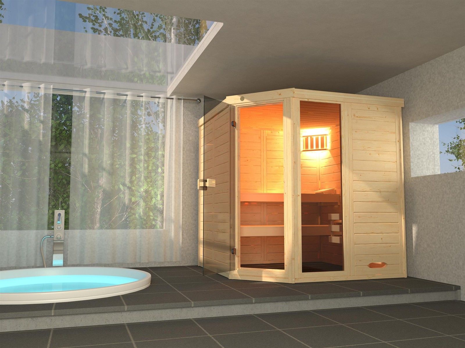 Weka Laukkala 38mm vastag tömörfa oldalfal elemekből épülő finn szauna 3-méretben